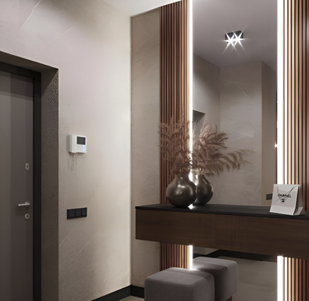- Сделает точный замер; Проконсультирует по подготовке стен, поддонов, закладных и выводов под подсветку;